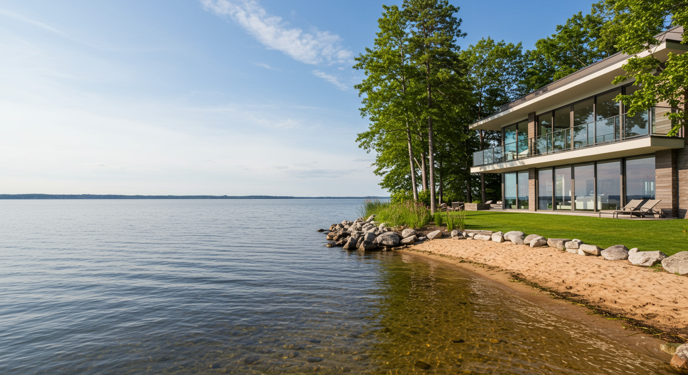 Ben Bowen"Paradise On Points End" is a stunning Southern California modern masterpiece nestled on the shores of Lake Norman with its own private sandy beach, just minutes from The Point. This brand-new construction home offers your own slice of paradise with over 7,000 square feet of living space.
