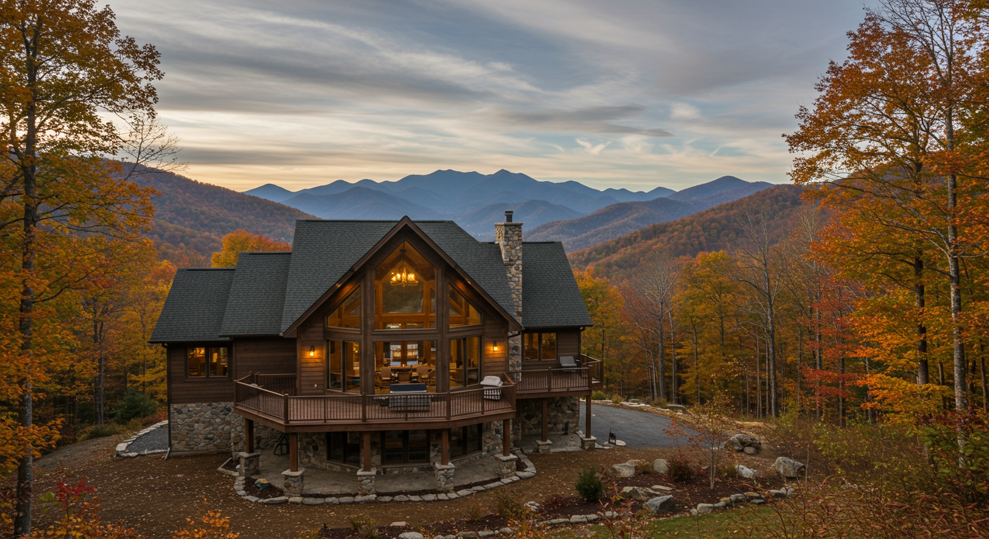 Amy PepinAn exquisite mountain retreat, Autumn Ridge sits on the side of Yellow Mountain high in the Blue Ridge Mountains. This spectacular home makes for an unparalleled mountain experience. A 300-degree almost panoramic view includes not only long-range 50-mile views but immediate ridgelines and beautiful feathered vistas undulating to the horizon.